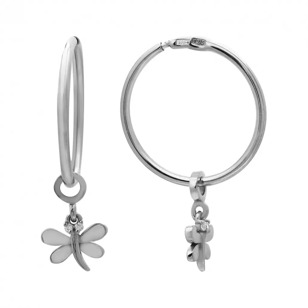 Серьги-конго с фианитом из серебра