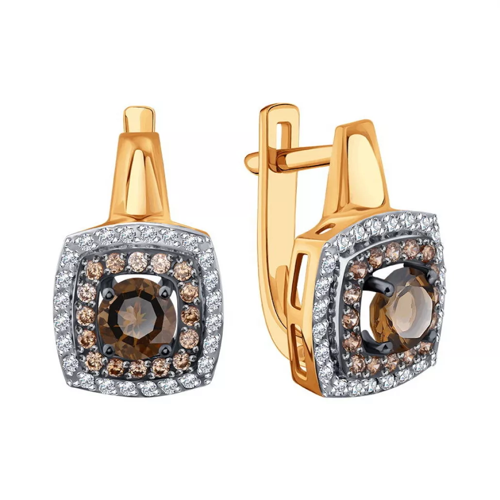 Серьги с раухтопазом и фианитом из золота